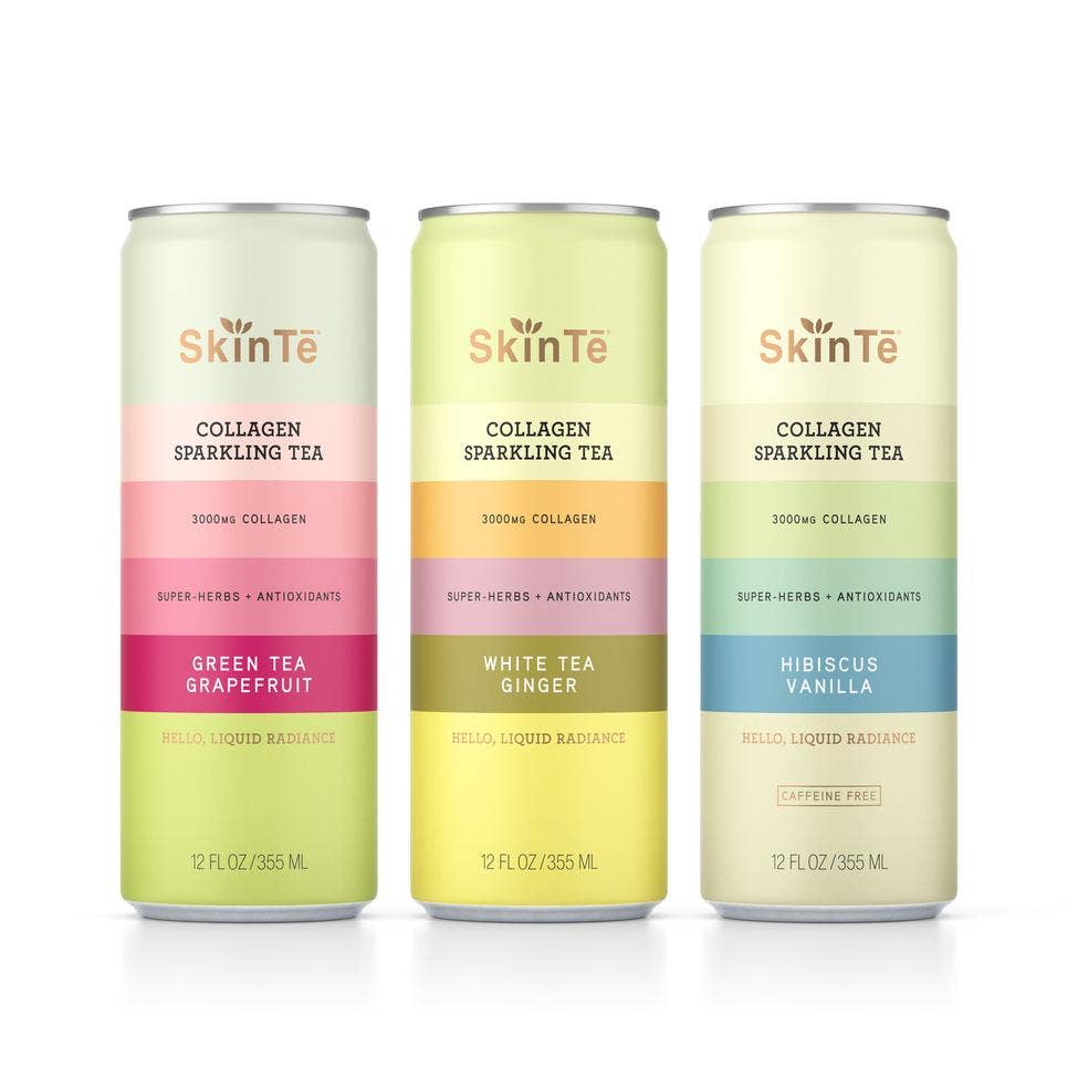 SkinTē is the first-ever collagen sparkling tea founded by three women on a mission to unleash health and beauty from the inside out every day. Each drink contains the signature SkinTē Equation: 3000mg of kosher, grass-fed collagen peptides, super-herbs such as Hawthorn Berry, Passion Flower, Horsetail and Nettle Root.