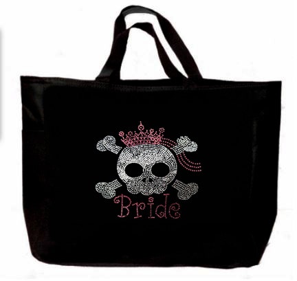 Tired of seeing all the “pretty in pink” types of totes on this list? Want something a little more punk rock for your bridal crew? This glitzy, glam rocker-approved tote bag is just what the doctor ordered.