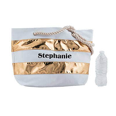 This personalized tote has a striking gold and black theme that will draw attention to your crew in the best way possible.