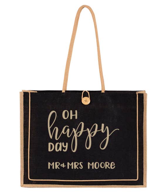 Gold and black are two colors that find themselves at every wedding, so why not use those colors as a theme for your totes? It just makes sense! That’s what makes the Bliss Jute Wedding Tote such a good choice for just about any bridal party.