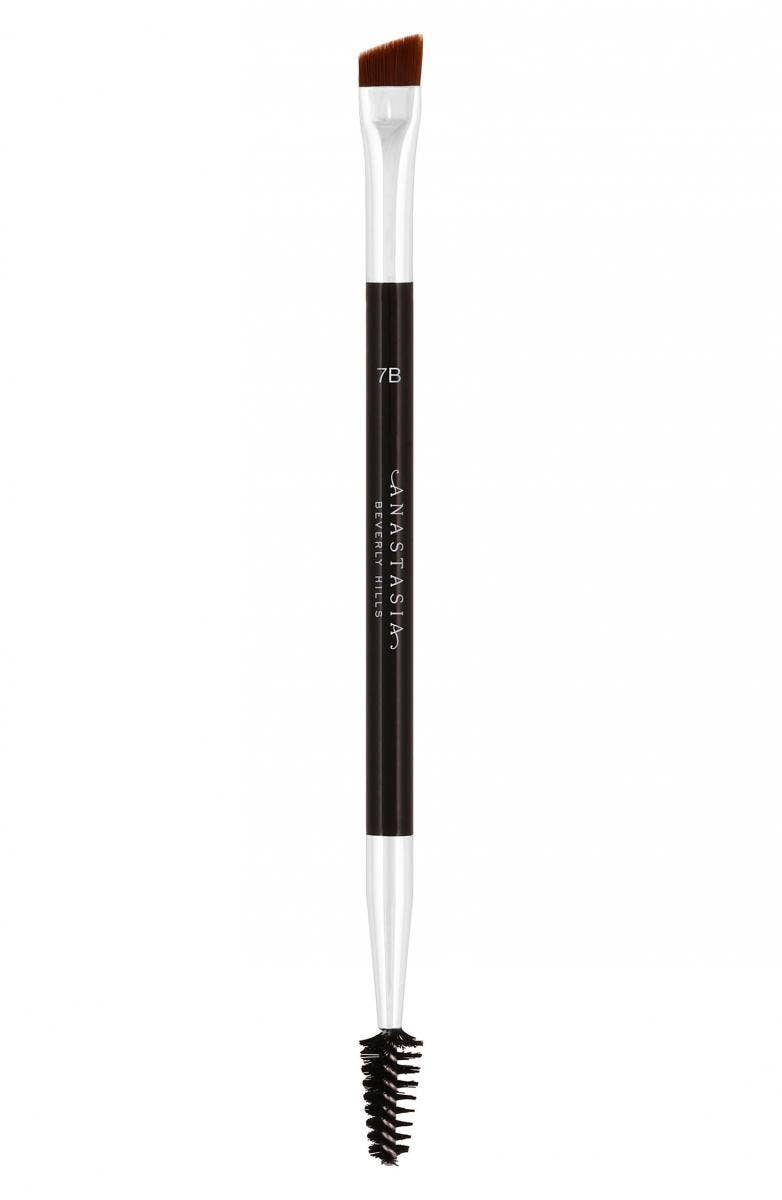 A synthetic-bristle brush with an angled brush head on one end and a spoolie on the other, this is ideal for use with brow color products, filling in and defining your brows, then grooming with the spoolie end.