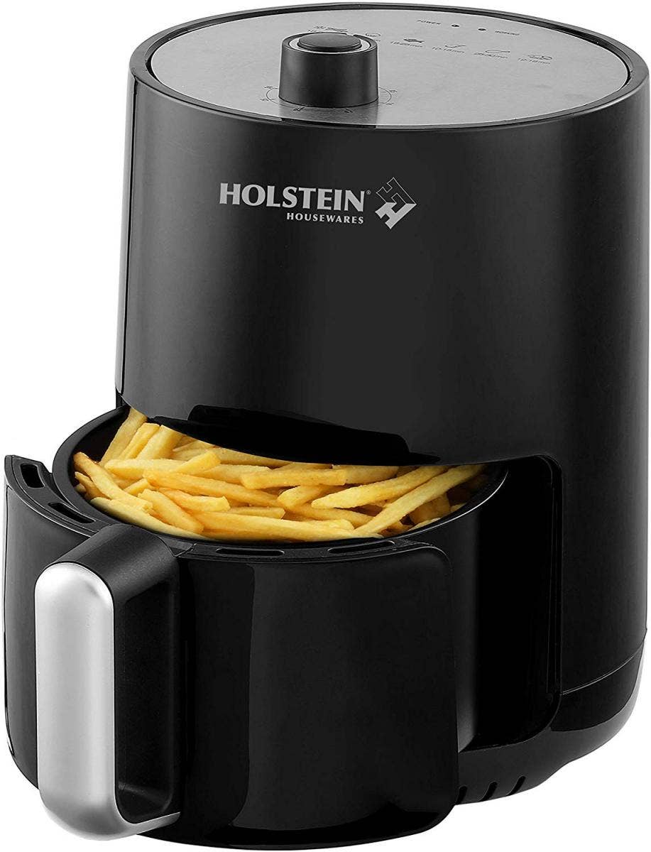 With Holstein Housewares Air Fryer, you can enjoy your favorite snacks and food with far less oil. Rapid Air Technology cooks food by circulating hot air in all directions, ensuring fast and even cooking. The only thing you have to do is to set the auto shut-off timer and you are good to go; the alarm will indicate when your food is ready.