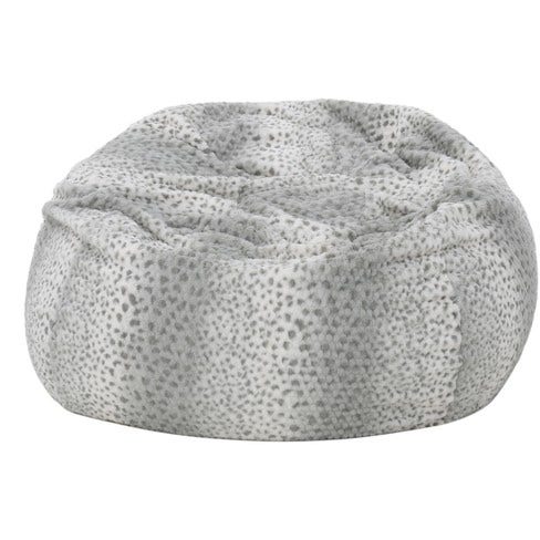 This is a faux fur bean bag that's soft to the touch and perfect for lying against. It's great for any age and any room.