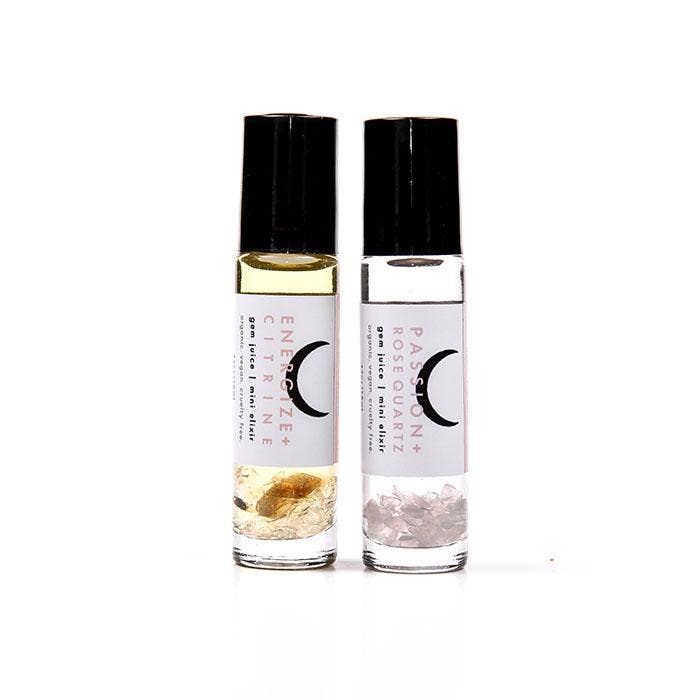Dab a bit of these gem juice rollerballs to your wrist to find your zen. Each mini-elixir is supercharged for specific intentions and contains tumbled crystal chips for extra-calming purposes.