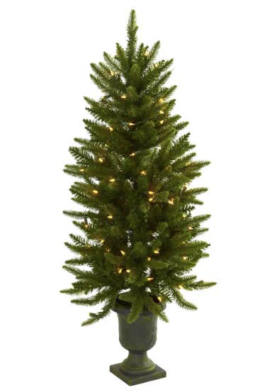 18. Nearly Natural 4-Foot Slim Christmas Tree with Urn and Clear Lights