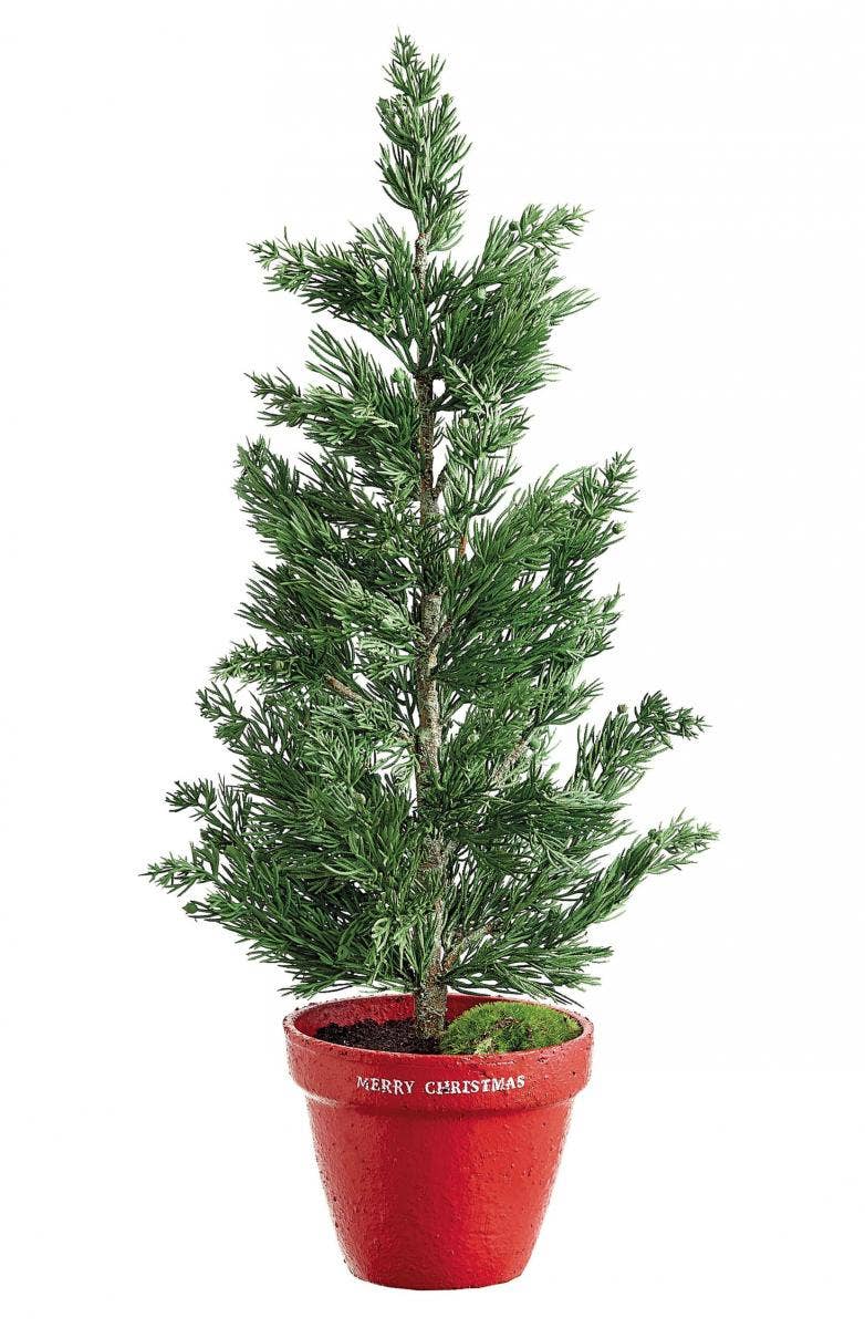 No need for a green thumb when you've got this charming faux-pine planter to add a splash of colorful Christmas cheer to your space.