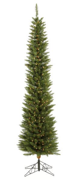 This tree is so much fun and a real space saver! Perfect for dorm rooms, small apartments, doors or anywhere there is not enough space for a regular tree. It features 2"-wide needles with perfectly shaped tapered tips that are a medium two-tone green color and have a natural, lush look and feel.
