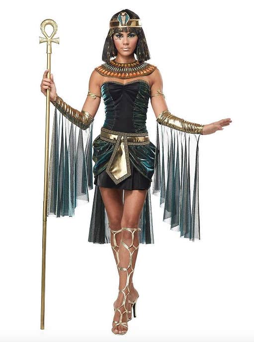This costume comes with a beautifully detailed dress, belt, gem beaded collar, headpiece, and glovelettes with sheer drapes that run down the arm. Sandal heels, wig, and staff not included.