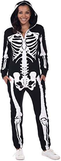 This Skeleton jumpsuit has printing on both the front and back, and zippered pockets to ensure your valuables stay safe all night long.