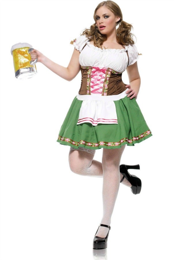 This fun costume comes with a peasant top dress. Beer stein purse and stockings not included. You should probably carry a draft of beer with this one!