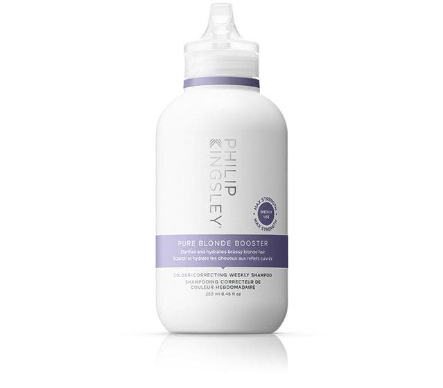 The Pure Blonde Booster Shampoo clarifies and hydrates brassy blonde hair, instantly neutralizing brassiness and cooling warm tones leave hair looking radiant and clarified. Pure Blonde Booster Colour-Correcting Weekly Mask clarifies and nourishes, and instantly neutralizes brassy tones to leave hair feeling restored.