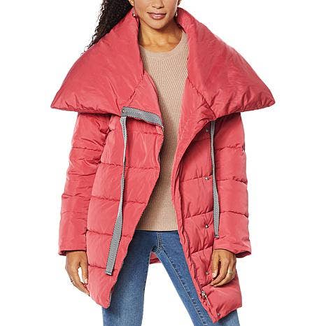 14. Laurier Asymmetric Front Zip Quilted Coat with Hidden Hood