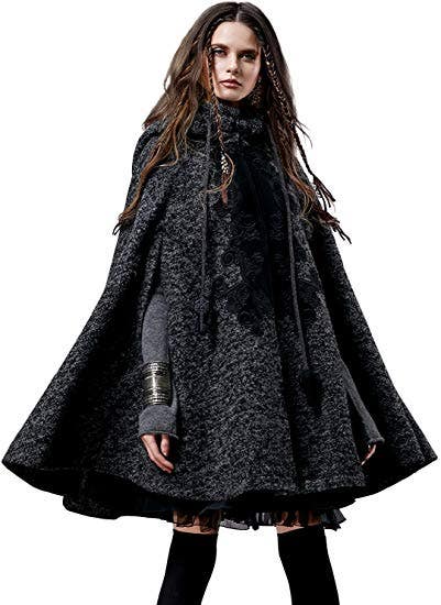 6. Artka Women's Hooded Wool Blend Cape Coat with Vintage Embroidery