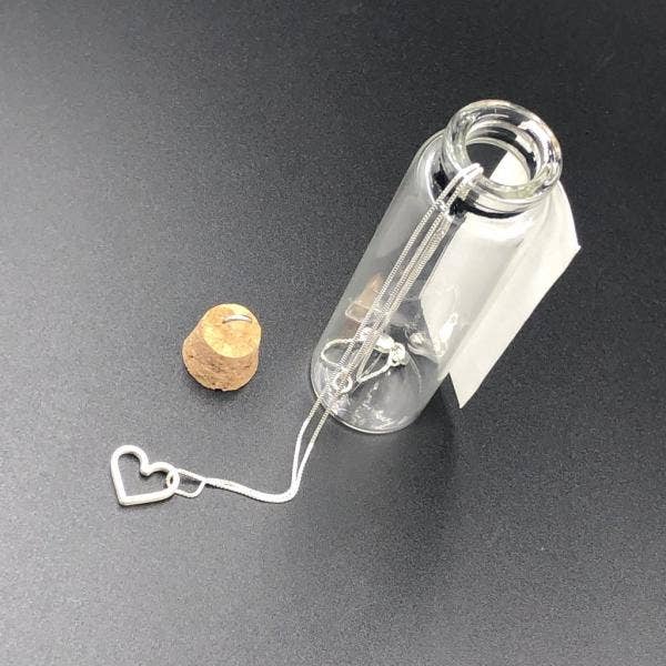 Packed in a little vial with a note, this is perfect for gift giving. The chain is 18" long and in the end is a little heart made with sterling silver. How cute is this!