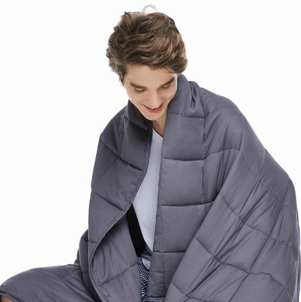 Weighted blankets are, basically, blankets that have weight to them. They can be as light as 10 pounds or as heavy as 30 pounds, but they are designed to create pressure that calms. That means tese blankets help people to relax and fall asleep, no drugs required.