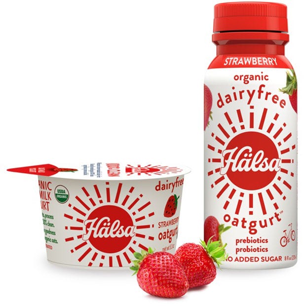 The first plant-based yogurt that doesn’t use enzymes or chemicals to alter the grain during the process, Hälsa is free of all artificial and processed ingredients that can compromise gut health. The Organic Oatmilk Yogurt Cups are available in 4 delicious flavors (Plain, Strawberry, Blueberry & Mango), and are free of dairy, soy, and added sugar.