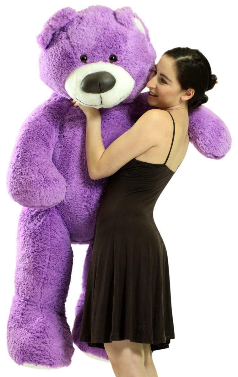 Rather than your typical brown or white stuffed bear, choose something different with this purple plush teddy bear. Stuffed with lots and lots of squishy soft stuffing, it can be used as a pillow or cuddle buddy, and is huge at 5 feet tall.