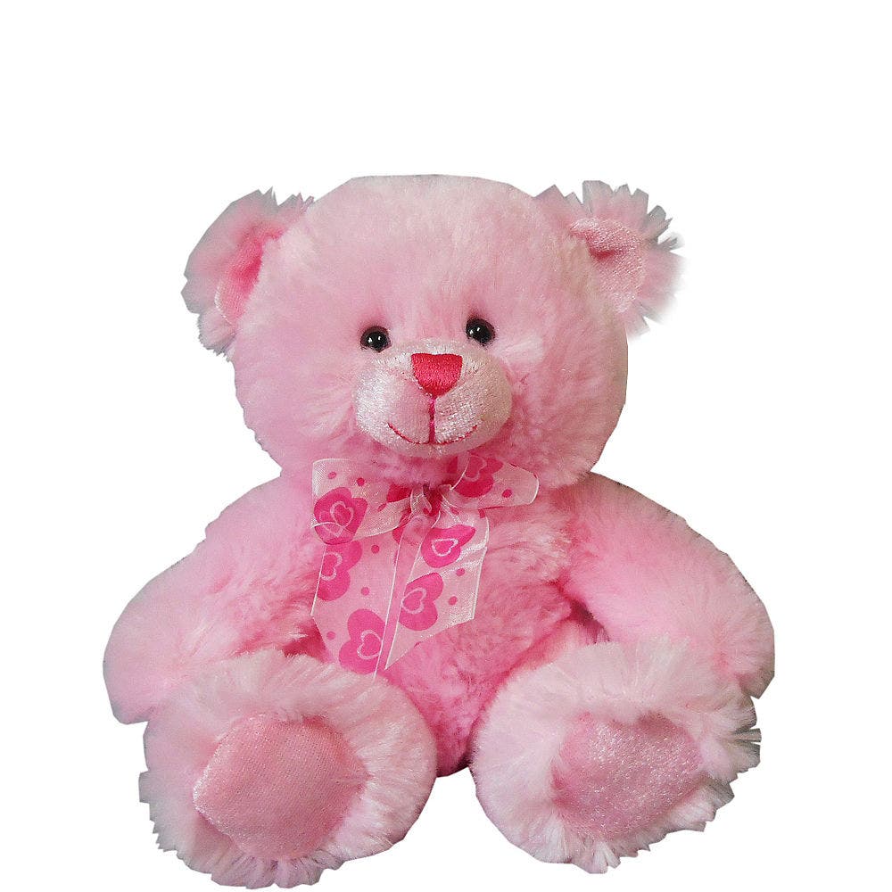 Give your valentine that warm and fuzzy feeling with the Pink Bow Tie Teddy Bear! This loveable pink bear is wearing a bow tie printed with pink hearts, and its pink nose makes this cuddly Valentine's Day gift extra sweet.
