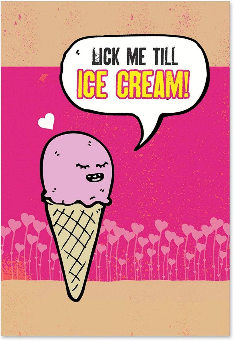 If you love puns, this is a cool and funny card. It features an ice cream cartoon illustration with a hilarious cover message that's perfect for adult couples.