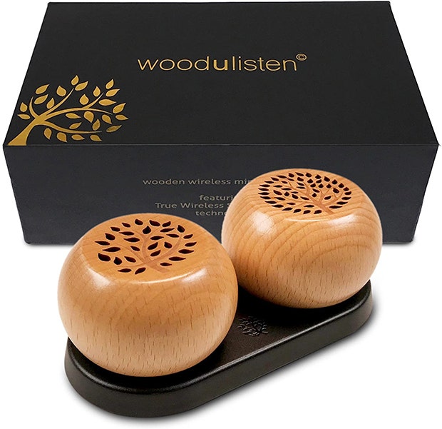 WoodUListen is a Bluetooth speaker in a beautifully-carved beechwood shell, topped off with a tree and branch design. This set comes with two speakers and a charging dock, so just hook it up to the phone for conference calls, listen to music while you work, or just leave it for the aesthetic.