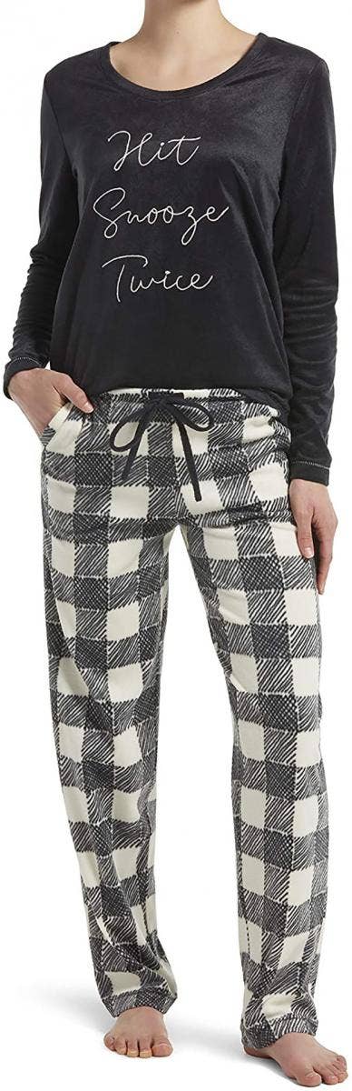 5. HUE Sueded Fleece Long Sleeve Tee and Pant Pajama Set