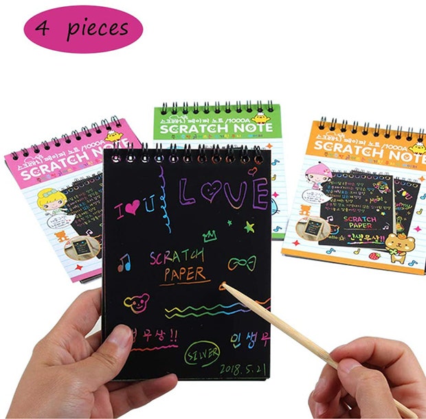 If you went to school in the 2000s, you probably remember scratch paper. Now you can introduce your family to this fun activity. Give everyone a form of art to express themselves, while doodling relaxed in your pajamas. Then, hang the finished product on the fridge!