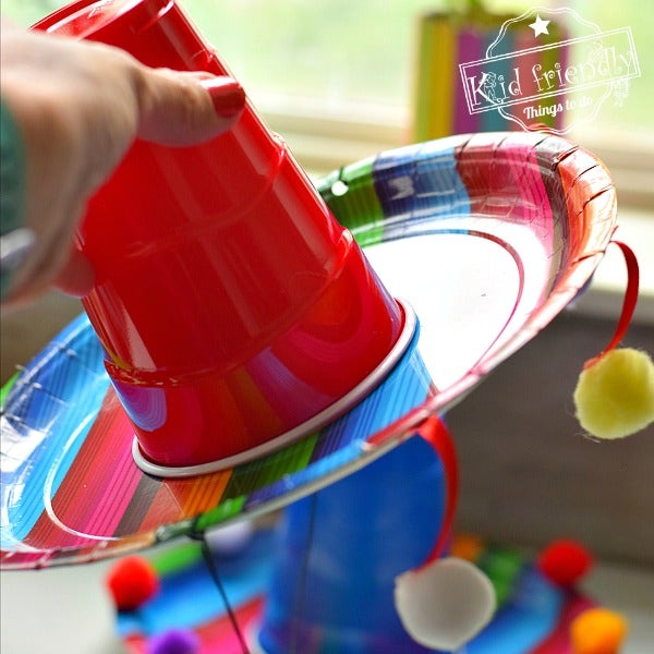 If you don’t have paper plates or plastic cups, try cutting up any cardboard and bending it into shape. You can color in or paint on your own designs for maximum personalization.