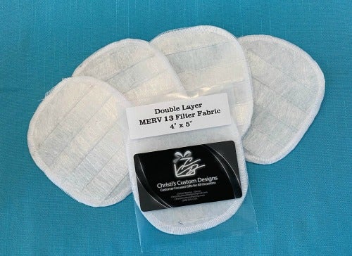These filters are individually sealed, hand-cut fabric filter inserts for homemade masks that have a pocket.