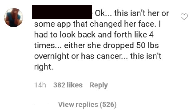 “I had to look back and forth like 4 times...either she dropped 50 lbs overnight or has cancer…this isn’t right.”