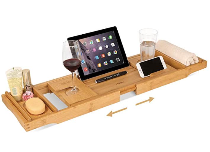 Elevate your experience with the bathtub tray that'll let you have a glass of wine by your side as you finally take some time out to binge-watch that Netflix show everyone's been talking about.