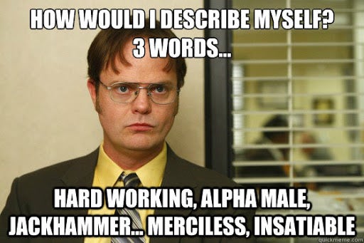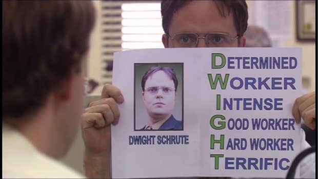 3. “D.W.I.G.H.T – Determined, Worker, Intense, Good worker, Hard worker, Terrific.”