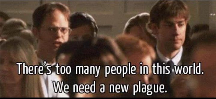 12. “Why are all these people here? There’s too many people on this earth. We need a new plague.”