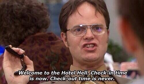 18. “Welcome to the Hotel Hell. Check-in time is now. Check out time is never.”