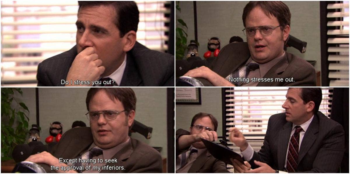 45. “Nothing stresses me out. Except having to seek the approval of my inferiors.”