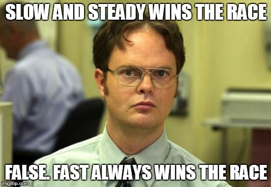 46. “Slow and steady wins the race? False. Fast always wins the race.”