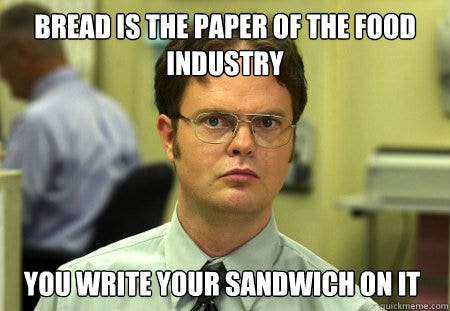 49. “Bread is the paper of the food industry. You write your sandwich on it.”