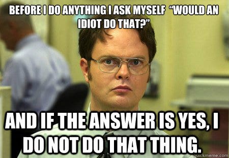7. “Before I do anything I ask myself, ‘Would an idiot do that?’ and if the answer is yes, I do not do that thing.”