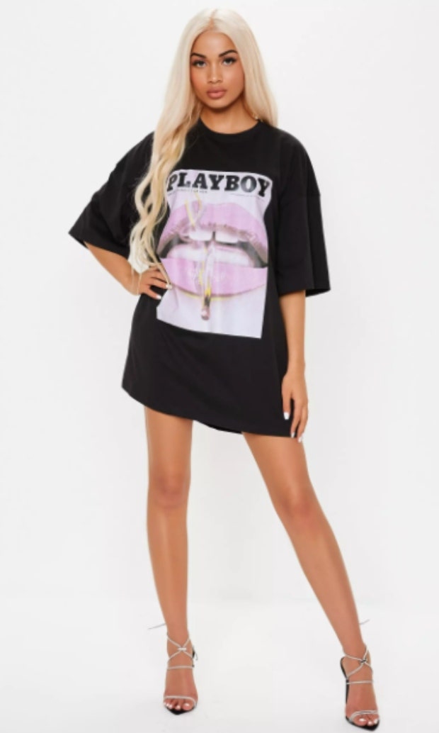 For a more dramatic look, this black T-shirt dress is the one. When you’re repping Playboy you’ve got to be a little risque, so this graphic is the perfect mix of flirty and fun without you having to bare it all.