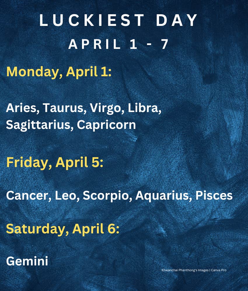 Each Zodiac Sign's Luckiest Day Of The Week, April 1 - 7, 2024