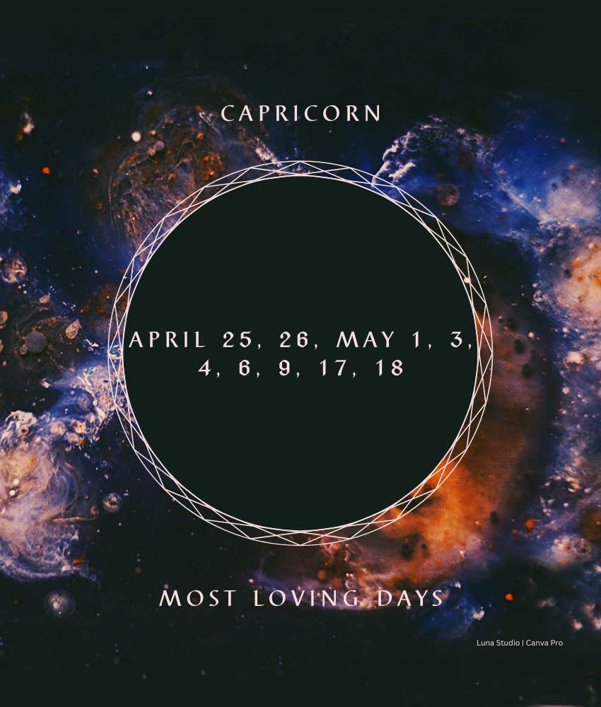 Most loving days: April 23, 24, 25, 29, May 2, 3, 15, 17, 18