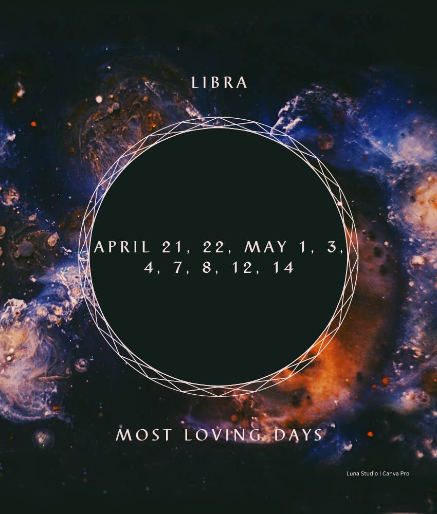 Most loving days: April 21, 22, May 1, 3, 4, 7, 8, 12, 14