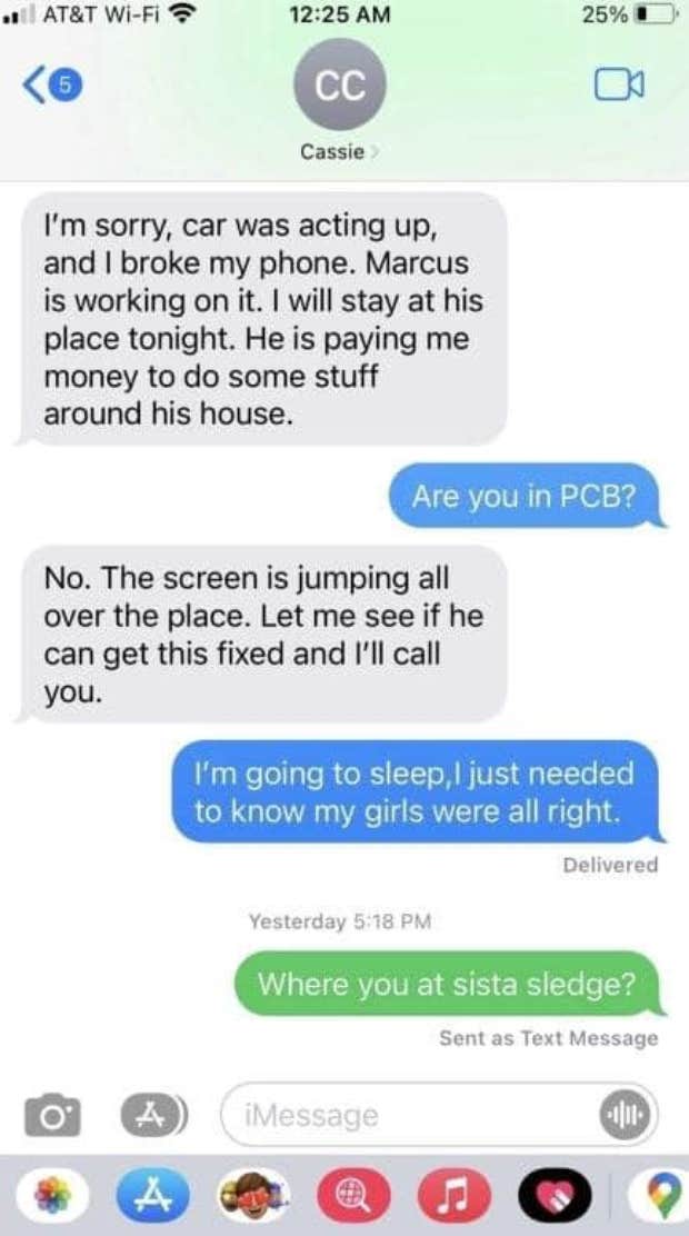 Carli's father received text messages from her phone claiming she was having car trouble and would be spending the night with Spanevelo.