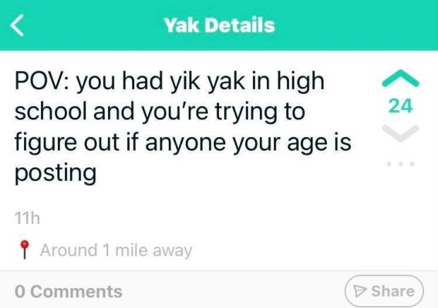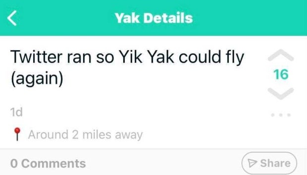 Yik Yak was truly a melting pot of some of the worst content out there, and there’s no doubt that it will soon return to its infamous former glory.