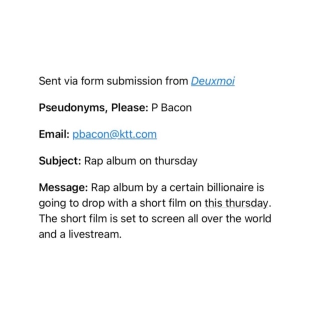 Another clue is that Deux Moi says the release would be coming from a “billionaire rapper.”