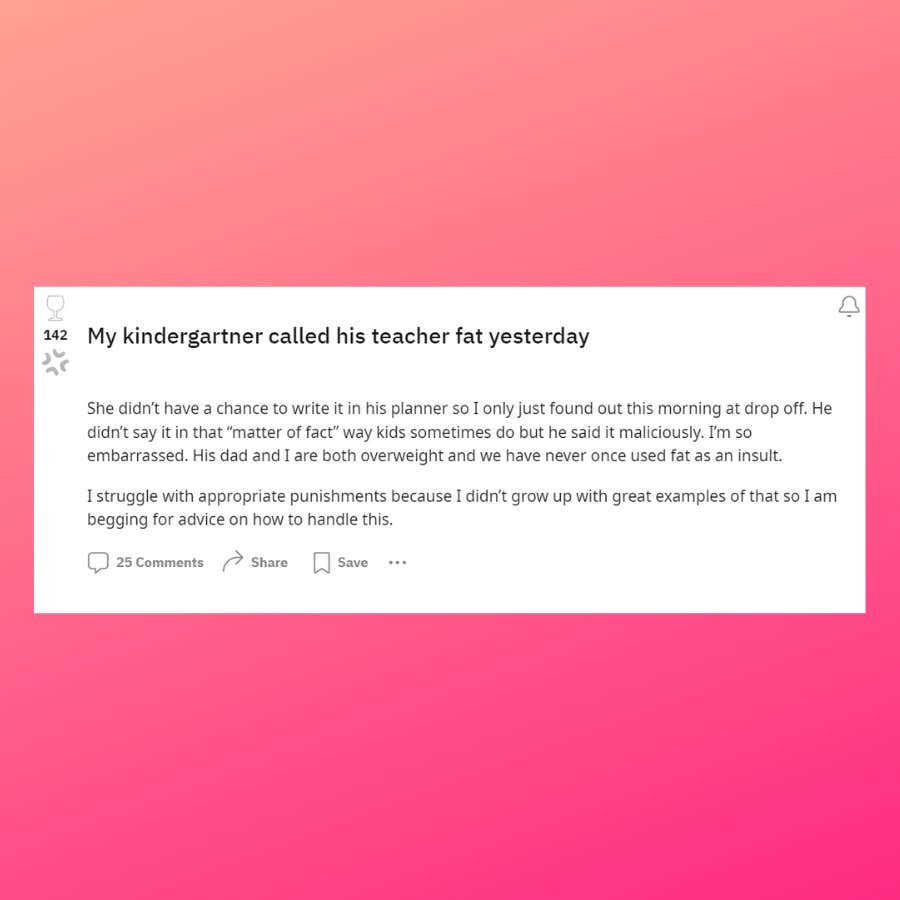 “He didn’t say it in that ‘matter-of-fact’ way kids sometimes do but he said it maliciously. I’m so embarrassed,” she wrote in a Reddit post. “His dad and I are both overweight and we have never once used fat as an insult.”