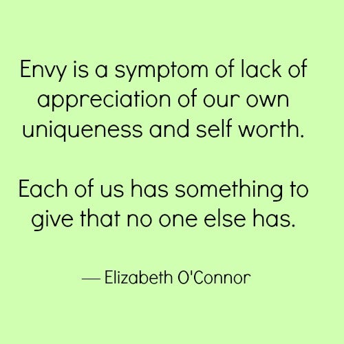 6. "Envy is a symptom of lack of appreciation of our own uniqueness and self worth. Each of us has something to give that no one else has."— Elizabeth O'Connor
