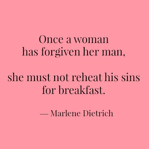 10. "Once a woman has forgiven her man, she must not reheat his sins for breakfast." —Marlene Dietrich