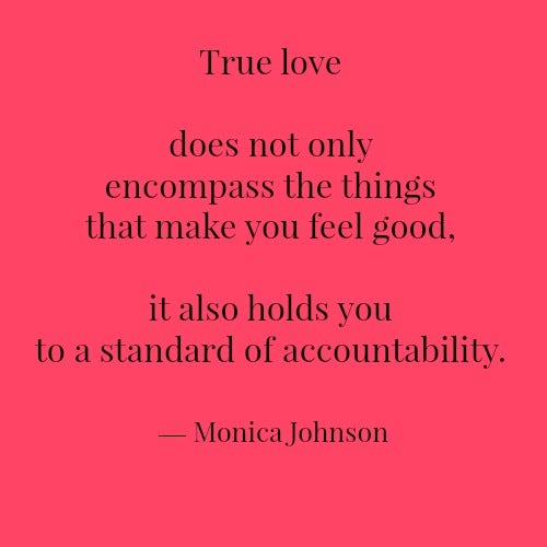 5. "True love does not only encompass the things that make you feel good, it also holds you to a standard of accountability." — Monica Johnson