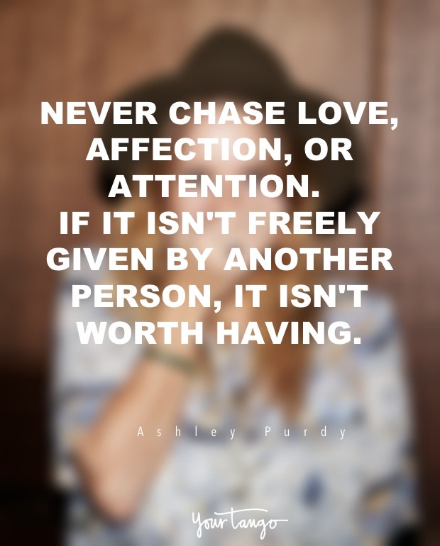 "Never chase love, affection, or attention. If it isn't given freely by another person, it isn’t worth having." — Ashley Purdy