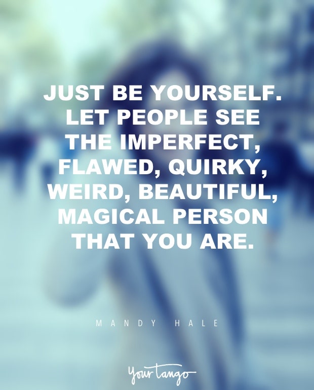 "Just be yourself. Let people see the real imperfect, flawed, quirky, weird, beautiful, magical person that you are." — Mandy Hale